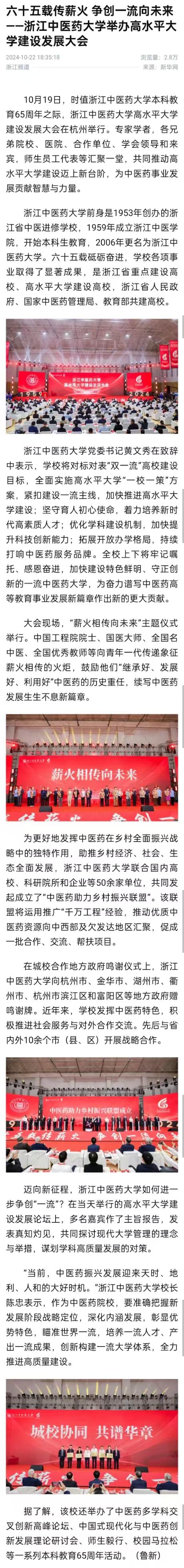 新华社、中国新闻网、中央广电总台国际在线、中国青年网、中国网、浙江在线:久久精品一区二区三区四区本科教育65周年:助推中医药高质量发展