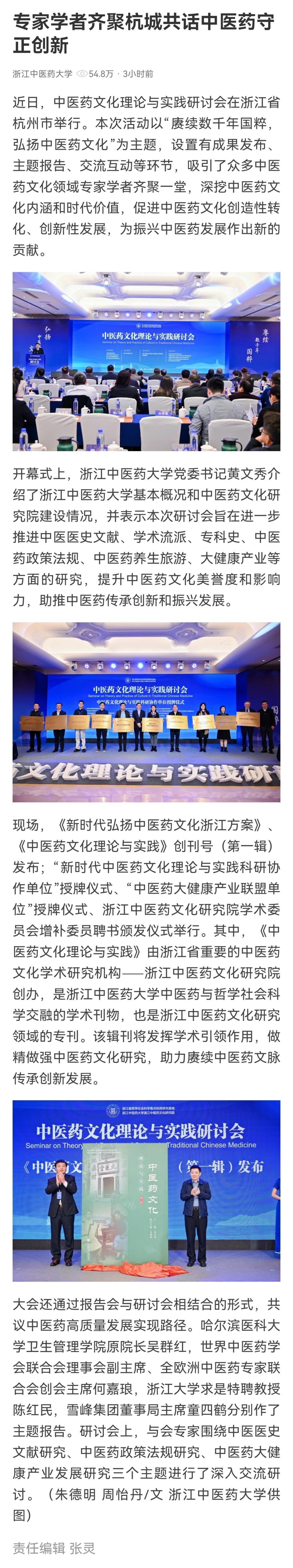 专家学者齐聚杭城共话中医药守正创新