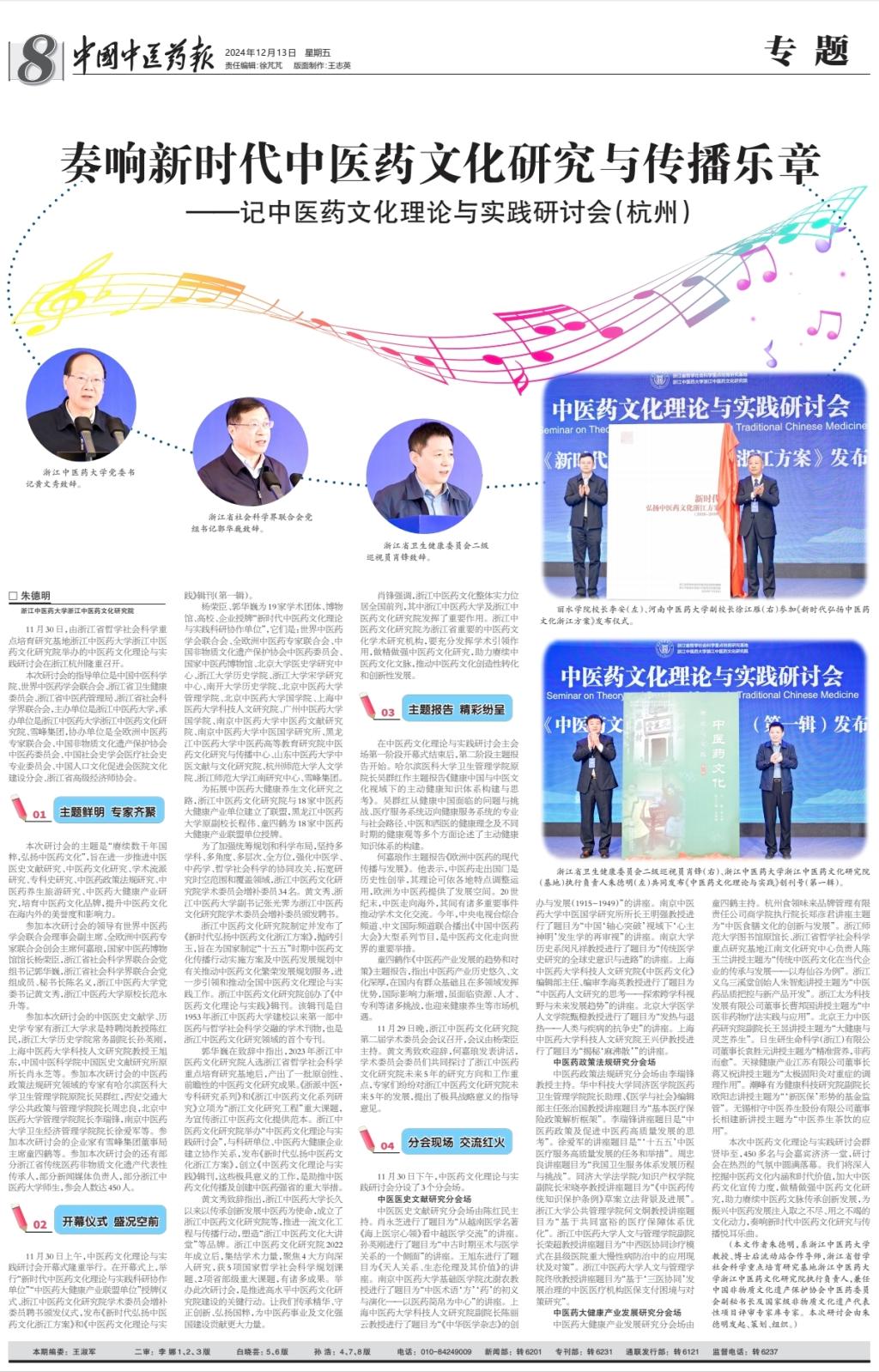 中国中医药报:奏响新时代中医药文化研究与传播乐章——记中医药文化理论与实践研讨会(杭州)