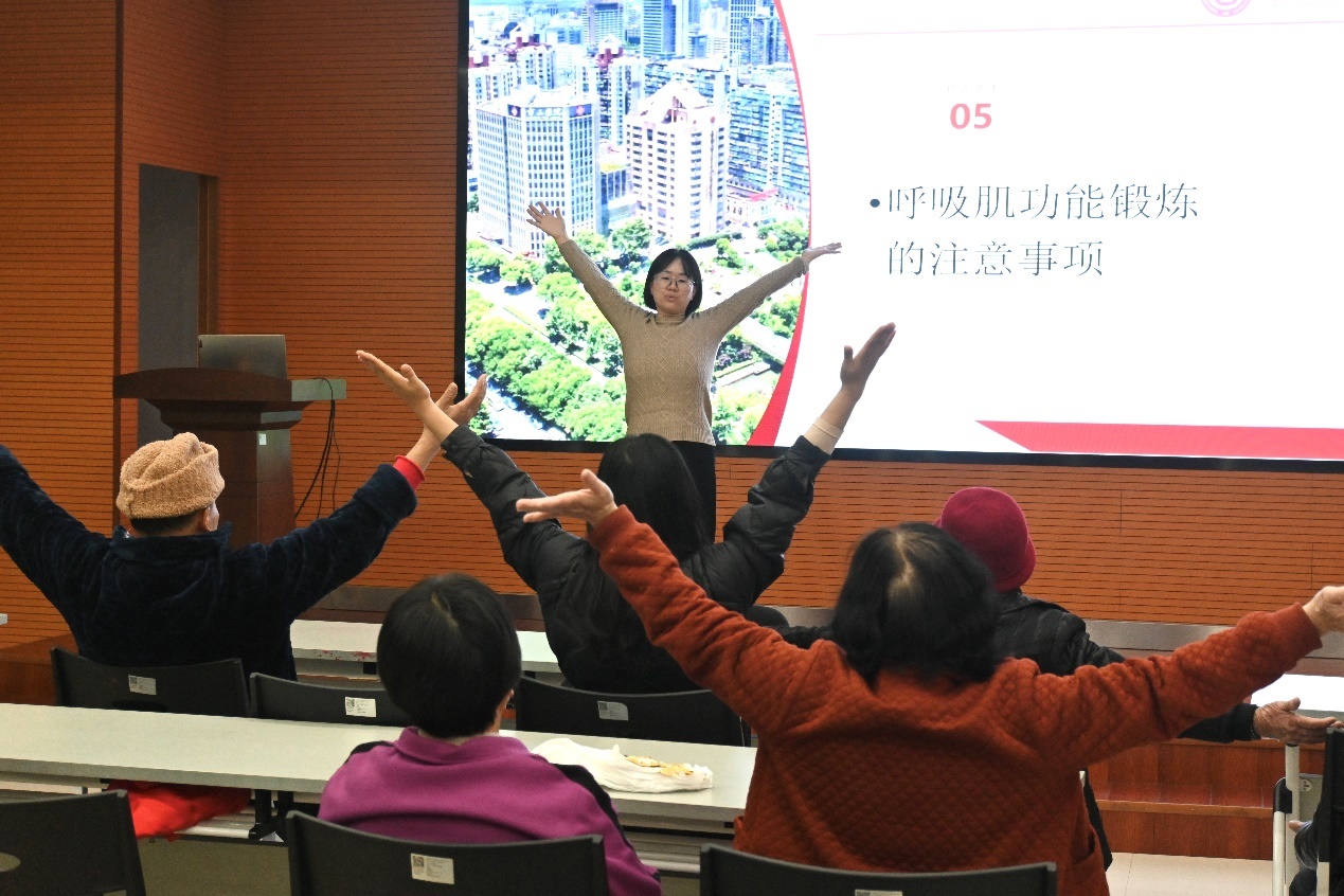 活动伊始,杭州市第三人民医院主管护师梁红霞为社区居民带来了《呼吸肌的功能锻炼》科普宣讲,深入浅出地讲解了呼吸肌锻炼的重要性与方法。志愿者团队围绕“浙里护理”智慧医疗平台展开宣讲,详细介绍线上预约护理、专家咨询等服务,让优质护理服务延伸到家。