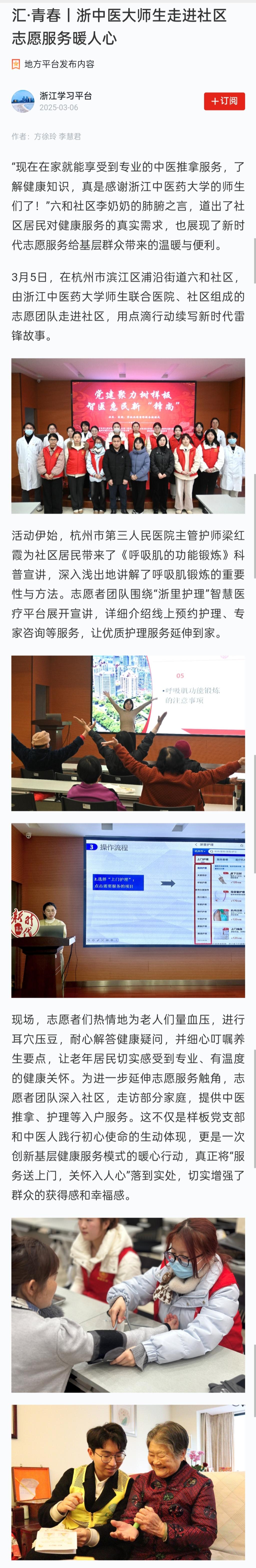 学习强国:汇·青春丨浙中医大师生走进社区 志愿服务暖人心