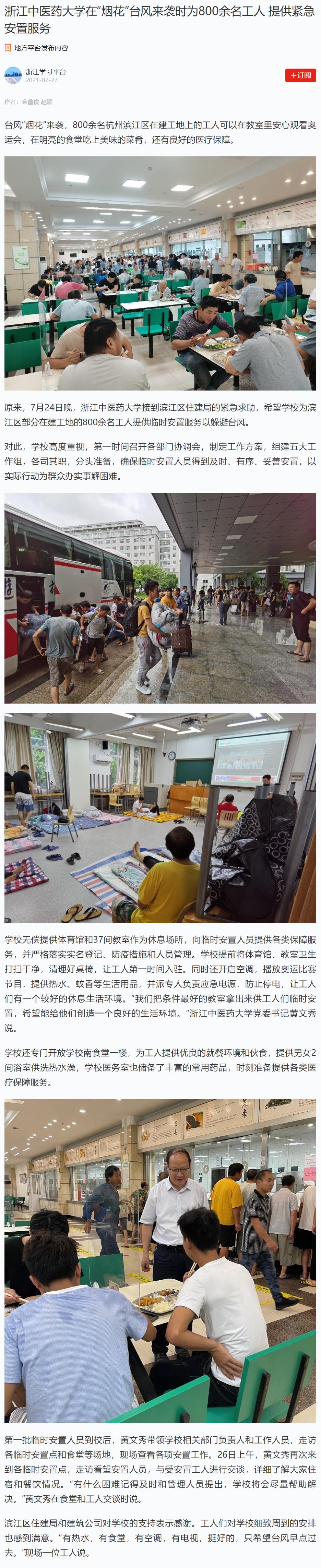 滨江区住建局和建筑公司对学校的支持表示感谢。工人们对学校细致周到的安排也感到满意。“有热水,有食堂,有空调,有电视,挺好的,只希望台风早点过去。”现场一位工人说。