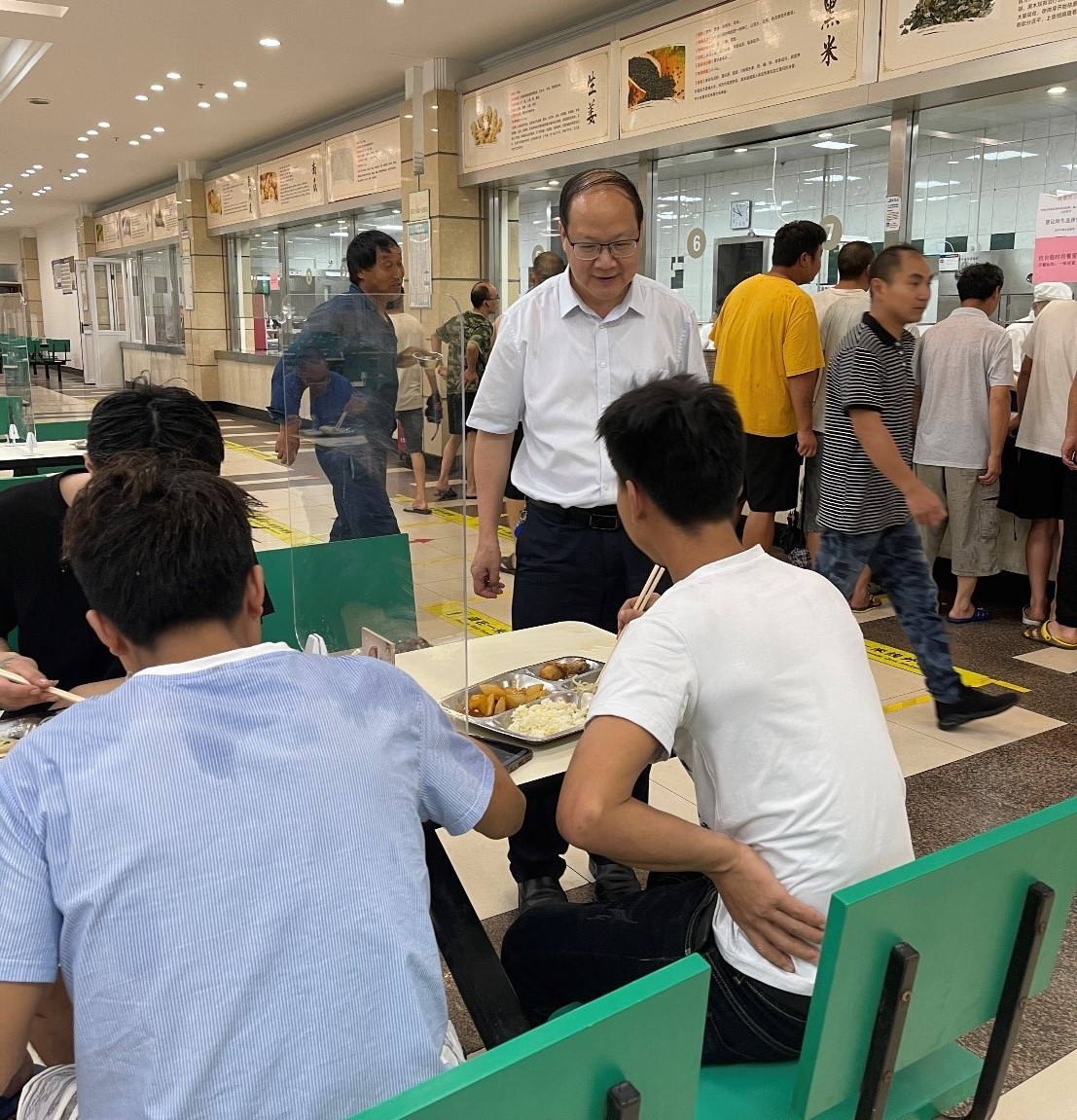 第一批临时安置人员到校后,黄文秀带领学校相关部门负责人和工作人员,走访各临时安置点和食堂等场地,现场查看各项安置工作。26日上午,黄文秀再次来到各临时安置点,走访看望安置人员,与受安置工人进行交谈,详细了解大家住宿和餐饮情况。“有什么困难记得及时和管理人员提出,学校将会尽量帮助解决。”黄文秀在食堂和工人交谈时说。