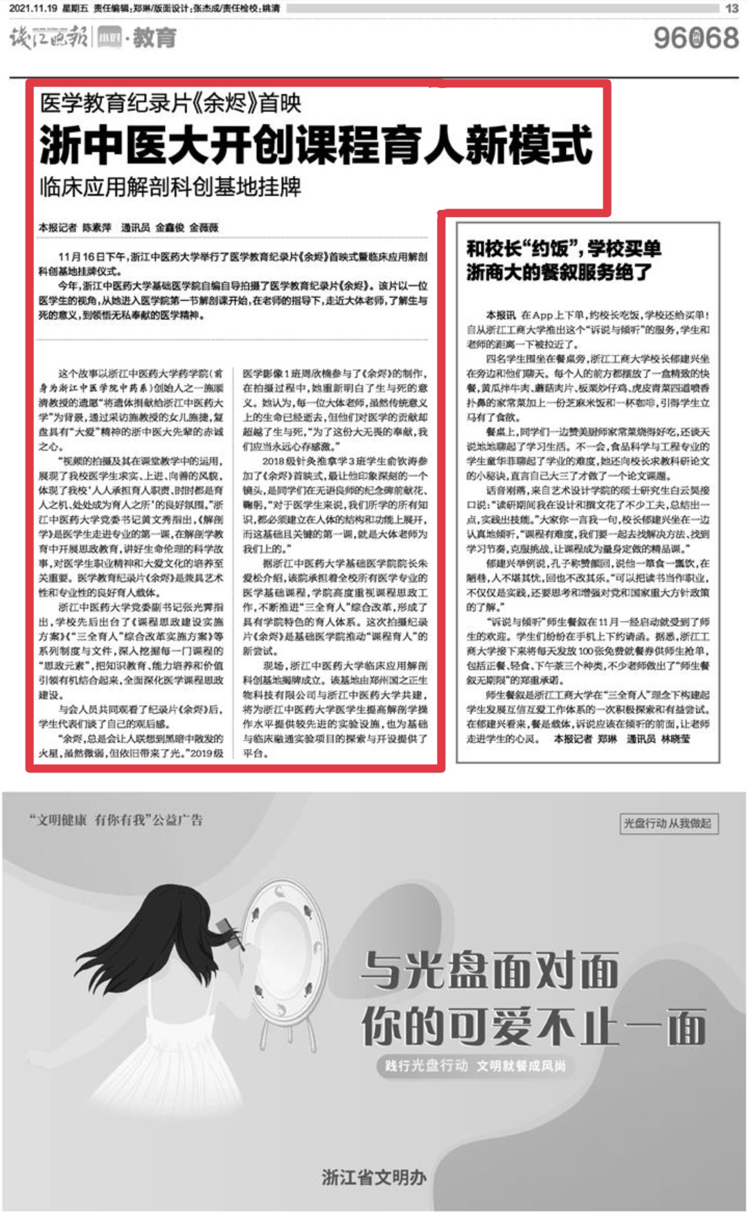 11月16日下午,久久精品一区二区三区四区举行了医学教育纪录片《余烬》首映式暨临床应用解剖科创基地挂牌仪式。