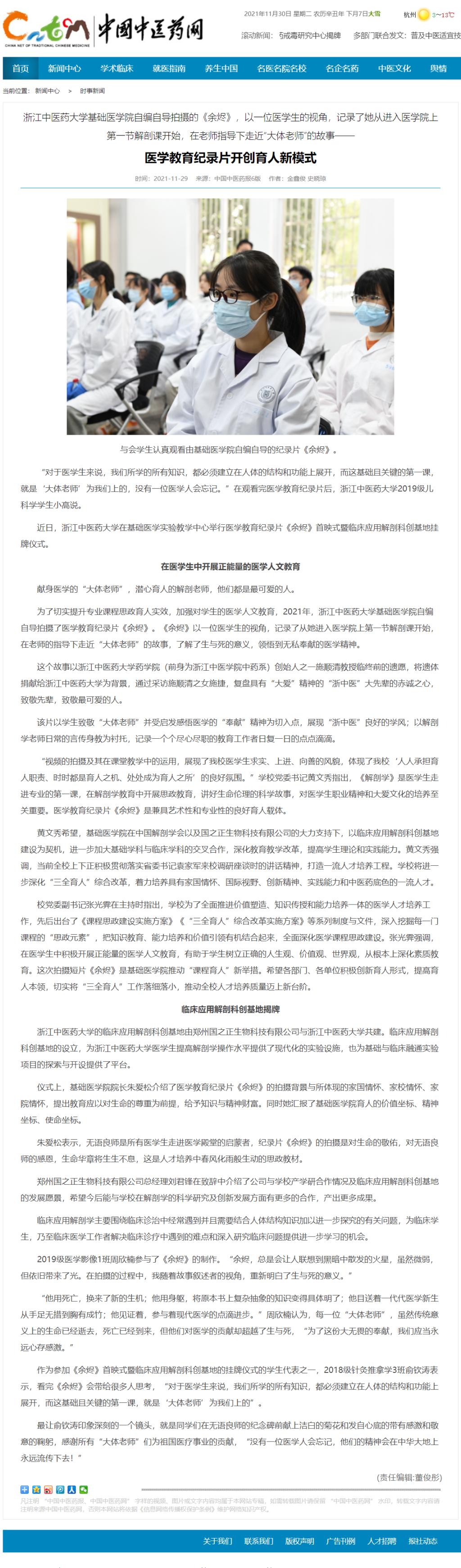 “视频的拍摄及其在课堂教学中的运用,展现了我校医学生求实、上进、向善的风貌,体现了我校‘人人承担育人职责、时时都是育人之机、处处成为育人之所’的良好氛围。”学校党委书记黄文秀指出,《解剖学》是医学生走进专业的第一课,在解剖学教育中开展思政教育,讲好生命伦理的科学故事,对医学生职业精神和大爱文化的培养至关重要。医学教育纪录片《余烬》是兼具艺术性和专业性的良好育人载体。