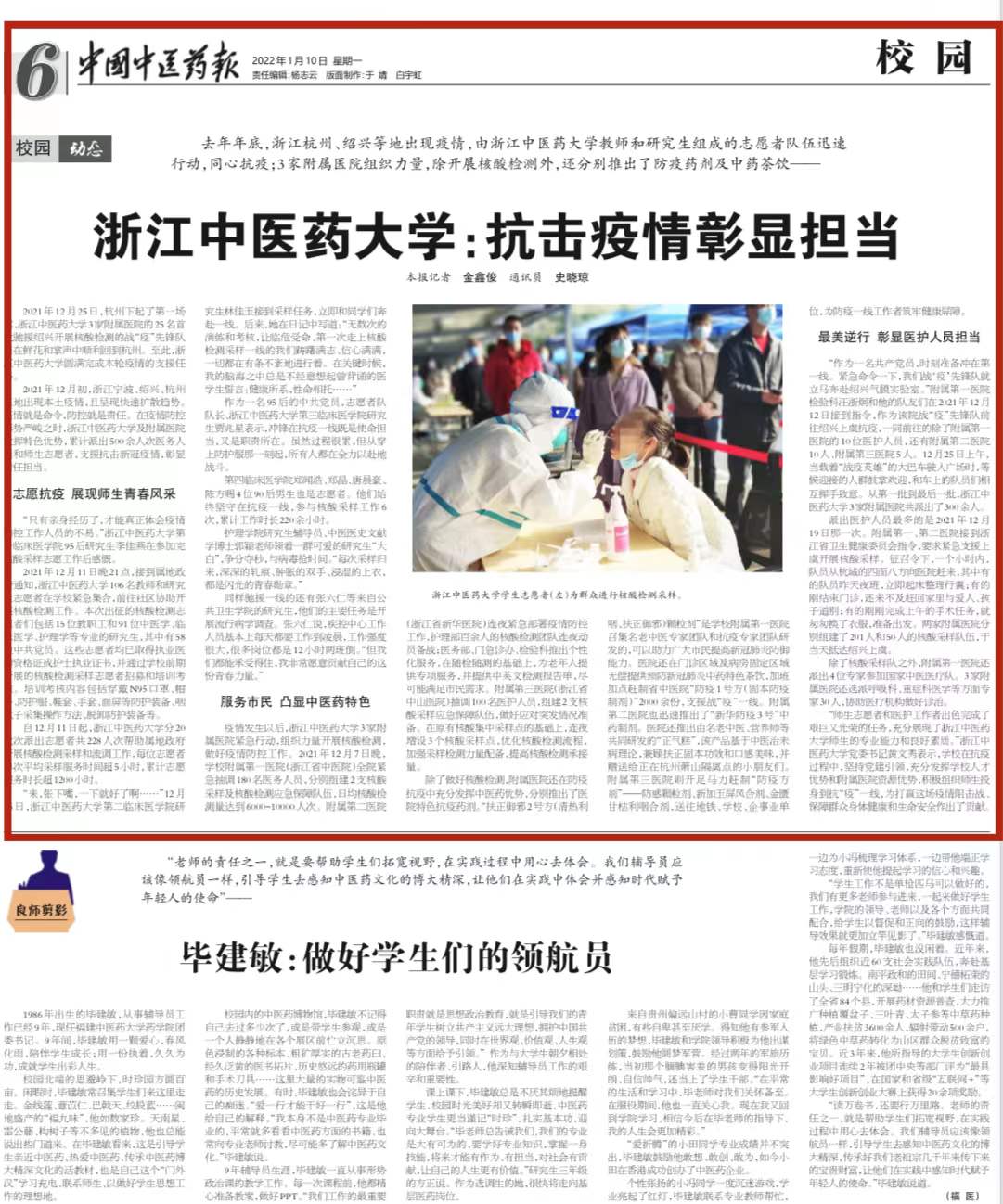 2021年12月初,浙江宁波、绍兴、杭州三地出现本土疫情,且呈现快速扩散趋势。疫情就是命令,防控就是责任。在疫情防控形势严峻之时,久久精品一区二区三区四区及附属医院发挥特色优势,累计派出500余人次医务人员和师生志愿者,支援抗击新冠疫情,彰显责任担当。