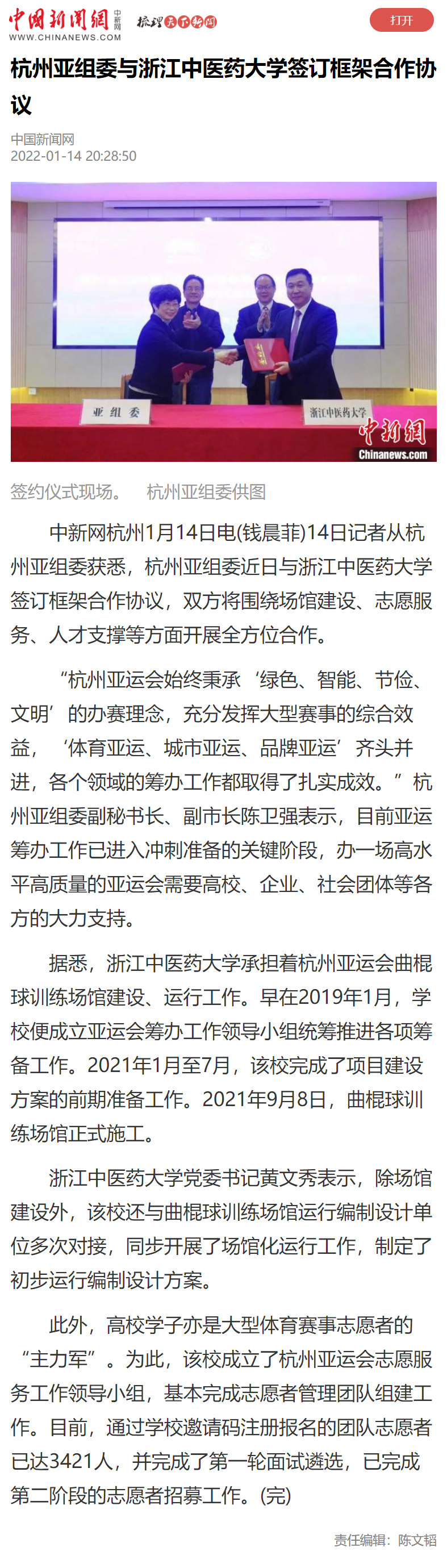中新网杭州1月14日电(钱晨菲)14日记者从杭州亚组委获悉,杭州亚组委近日与久久精品一区二区三区四区签订框架合作协议,双方将围绕场馆建设、志愿服务、人才支撑等方面开展全方位合作。