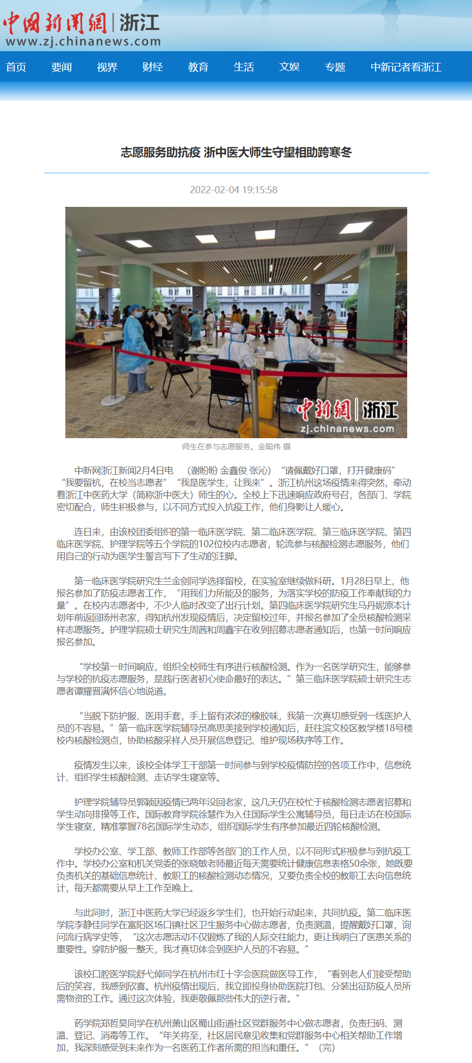 志愿服务助抗疫 浙中医大师生守望相助跨寒冬