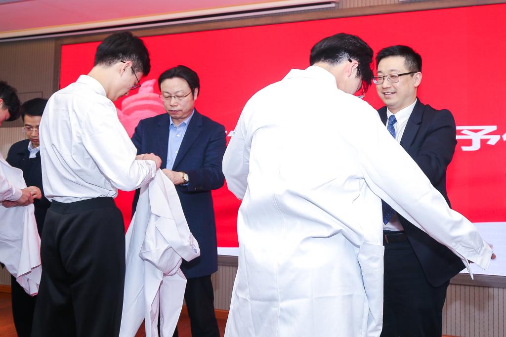 “我志愿献身医学,热爱祖国,忠于人民,恪守医德,尊师守纪,刻苦钻研,孜孜不倦……”在3月2日久久精品一区二区三区四区第四临床医学院白大褂授予暨医学生宣誓仪式上,学生们接过老师授予的白大褂,穿在身上,举起右拳,庄严地宣誓道。