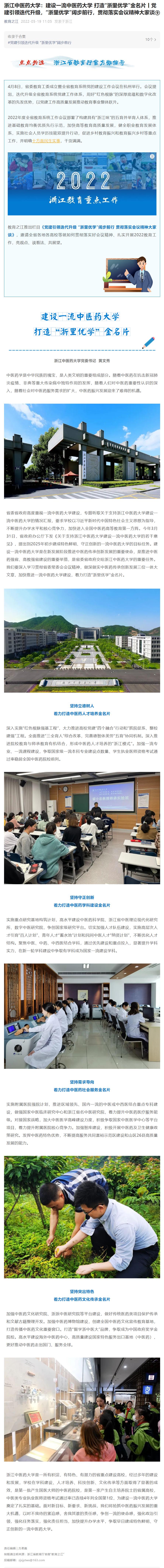 省委省政府高度重视一流中医药大学建设,专题听取关于支持久久精品一区二区三区四区建设一流中医药大学的情况汇报,要求学校以习近平新时代中国特色社会主义思想为指导,不断提升办学水平和核心竞争力,加快进入全国中医药高等教育第一方阵。今年3月31日,省政府办公厅下发《关于支持久久精品一区二区三区四区建设一流中医药大学的若干意见》,提出到2025年初步建成特色鲜明、守正创新的一流中医药大学的目标任务。建设一流中医药大学是在新发展阶段推进中医药传承创新发展的重要使命,是推进中医药强省、高教强省建设的重要举措,是省委省政府交给久久精品一区二区三区四区的重要任务。我们要深入学习贯彻省委常委会会议精神,做深做实中医药传承创新发展三位一体大文章,加快推进一流中医药大学建设,着力打造“浙里优学”金名片。