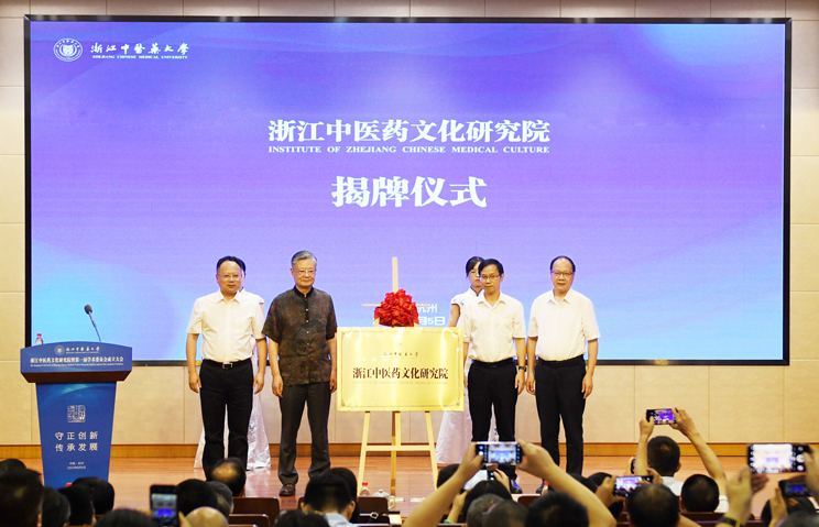 王琦、盛世豪、黄文秀、陈忠共同为浙江中医药文化研究院揭牌。