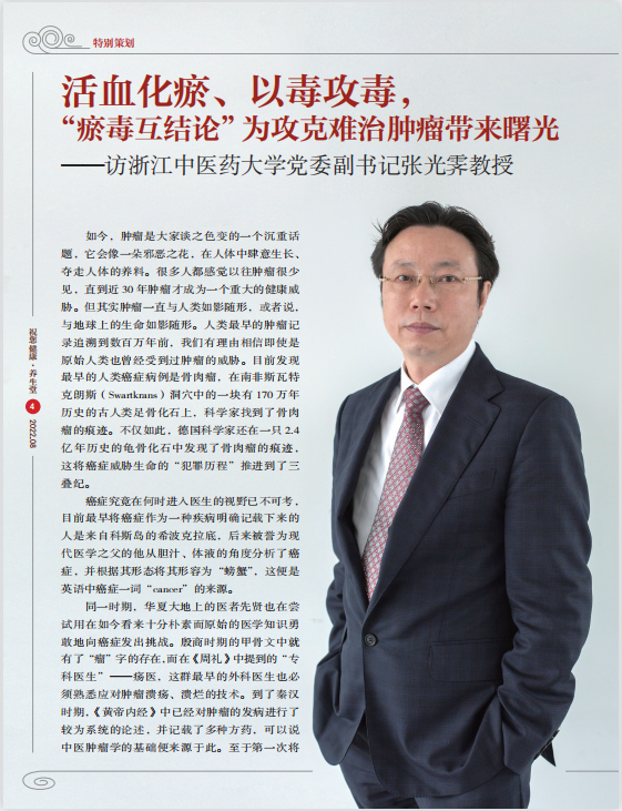 相比于快速发展的现代医学,中医对肿瘤的认识却总有些“说不清道不明”,很多人都认为中医不过是诵读经典,在古人的哲学、先贤的经典、悠久的医案中找到治愈疾病的方法。可中医既不是也不应该是一个停滞的体系,张光霁教授所创的“瘀毒互结理论体系”便是中医理论创新的典范之一,具有独特的学术价值与重要的临床指导意义。于是,笔者带着问题,拜访了张光霁教授。