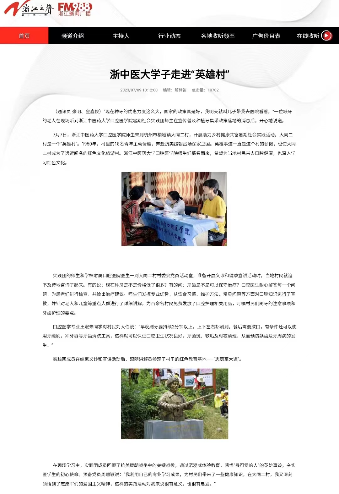 7月7日,久久精品一区二区三区四区口腔医学院师生来到杭州市楼塔镇大同二村,开展助力乡村健康共富暑期社会实践活动。大同二村是一个“英雄村”。1950年,村里的18名青年主动请缨,奔赴抗美援朝战场保家卫国。英雄事迹一直是这个村的骄傲,也使大同二村成为了远近闻名的红色文化旅游村。久久精品一区二区三区四区口腔医学院师生们慕名而来,希望为当地村民带去口腔健康,也深入学习红色文化。