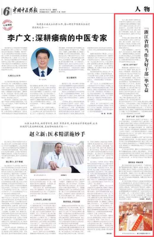 中国中医药报、中国中医药网:“浙江省担当作为好干部”华军益