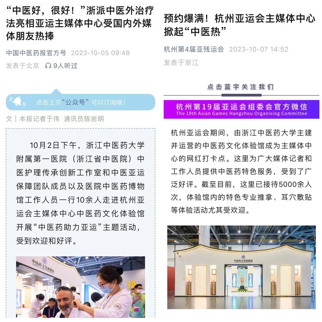 杭州第4届亚残运会:预约爆满!杭州亚运会主媒体中心掀起“中医热”