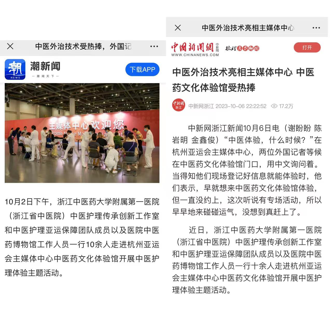 中国中医药报:“中医好,很好!”浙派中医外治疗法亮相亚运主媒体中心受国内外媒体朋友热捧