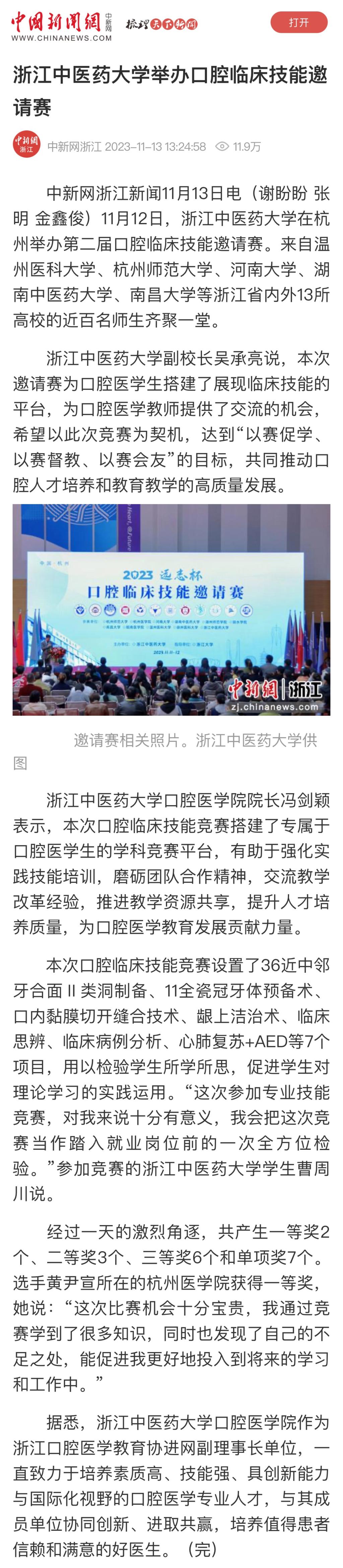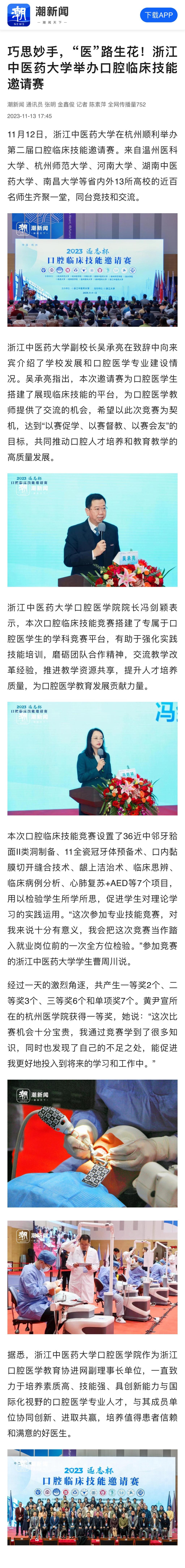 11月12日,久久精品一区二区三区四区在杭州举办第二届口腔临床技能邀请赛。来自温州医科大学、杭州师范大学、河南大学、湖南中医药大学、南昌大学等浙江省内外13所高校的近百名师生齐聚一堂。