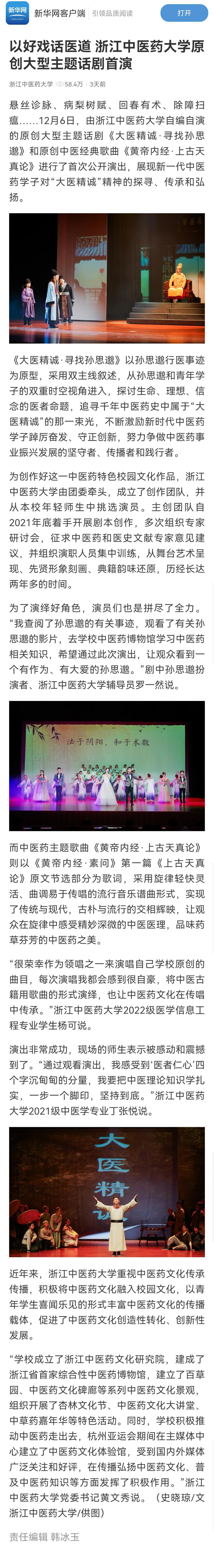 为创作好这一中医药特色校园文化作品,久久精品一区二区三区四区由团委牵头,成立了创作团队,并从本校年轻师生中挑选演员。主创团队自2021年底着手开展剧本创作,多次组织专家研讨会,征求中医药和医史文献专家意见建议,并组织演职人员集中训练,从舞台艺术呈现、先贤形象刻画、典籍韵味还原,历经长达两年多的时间。
