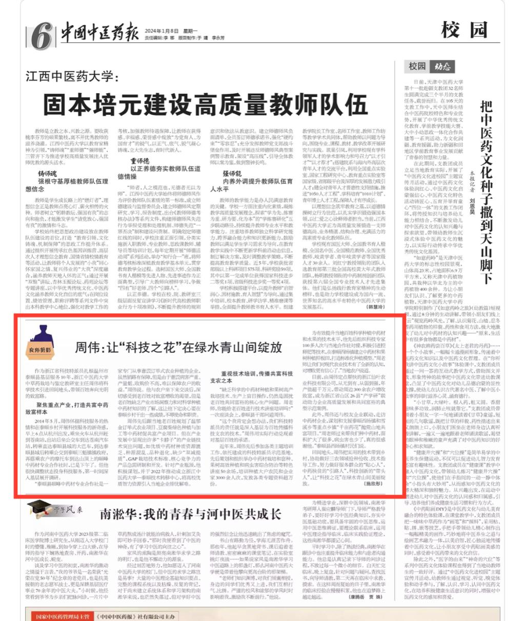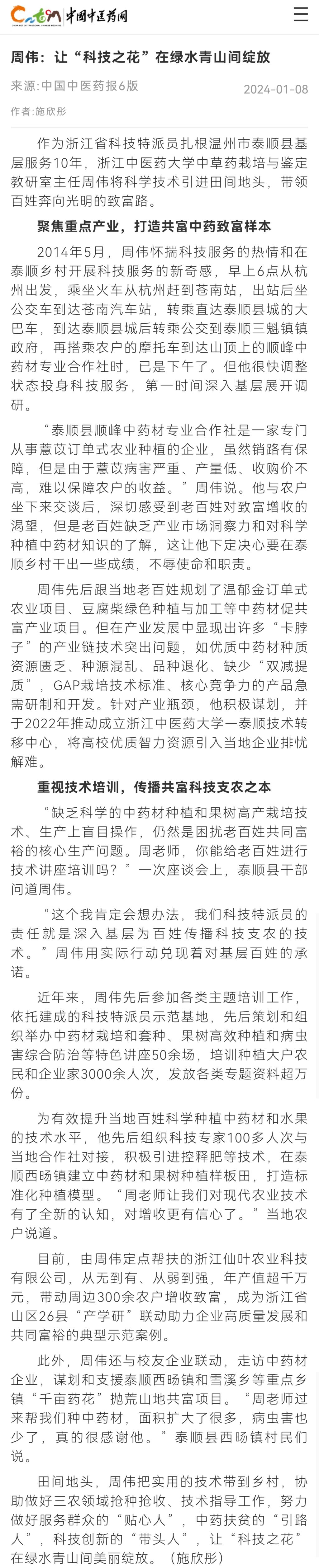 中国中医药报、中国中医药网:周伟:让“科技之花”在绿水青山间绽放