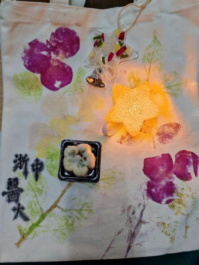 “百草奇妙夜”活动充分融合中医药元素,精心设计多个环节,涵盖“园艺疗法”“药食疗法”“芳香疗法”“绘画疗法”“运动疗法”等多种活动。具体有制作植物拓染与滴胶风铃、制备枣泥山药糕、辨识中草药精油香气、品鉴各类中草药花茶、绘画表达内心情感和参与趣味运动小游戏等。